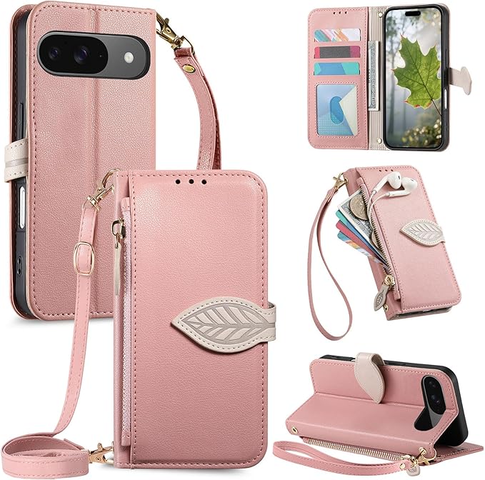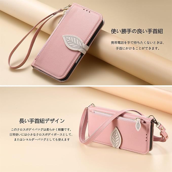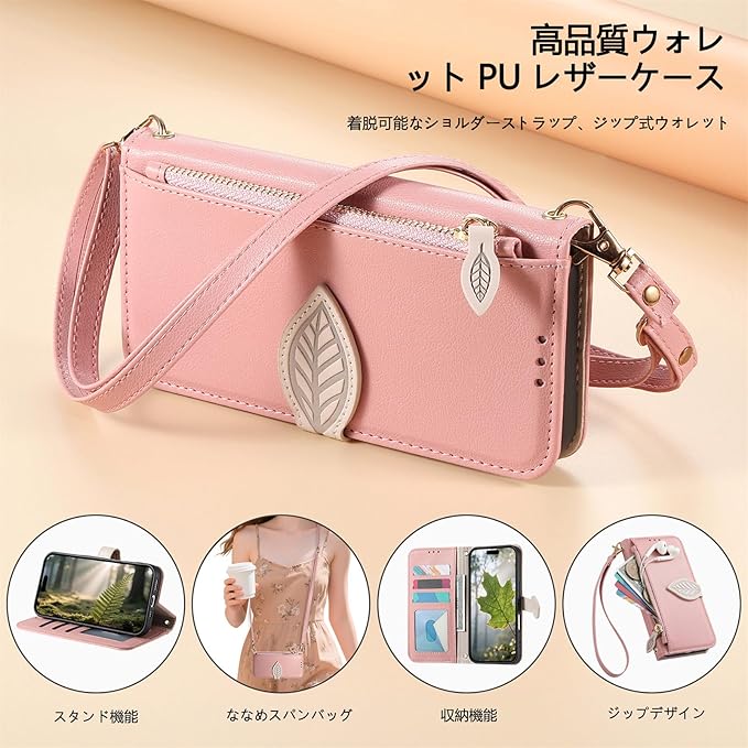 Vokpok対応 Google Pixel 9a ケース 手帳型 ショルダー 強力マルチカード収納 スタンド機能 耐摩擦 全面保護 グーグルピクセル 9A 財布型ケース 肩掛け 斜めがけ 手首かけ、掛けストラップ付き (長さ調整可能) おしゃれ 実用性 ジッパー小銭入れ Pixel 9A スマホケース PUレザー ある滑らかな手触り 贈り物 ピクセル9a ケース, ピンク