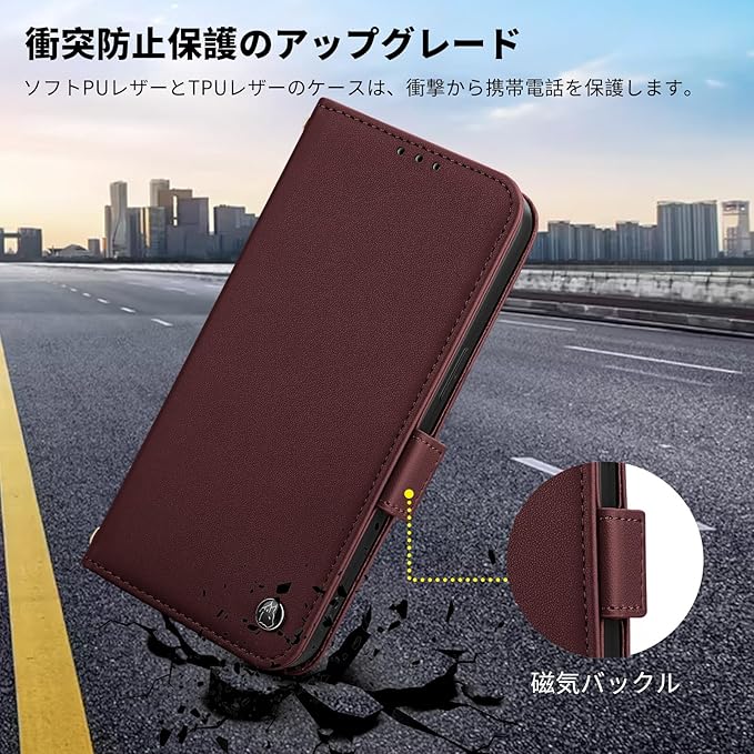 for Google Pixel 9A ケース 手帳型 高級レザー 財布型 ピクセル9a用 携帯ケース カード収納 耐衝撃 スマホケース ぐーくるぴくせる9a カードケース ポケット付き マグネット式 スタンド機能[ワインレッド]