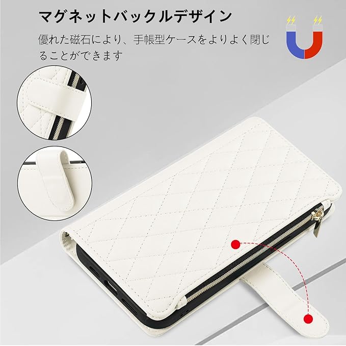Google Pixel 9A ケース 手帳型 ピクセル9Aケース手帳型 Googleピクセル9A 財布型 ショルダー カード収納 Pixel9Aケース スマホケース グーグルピクセル9A ぐーくるぴくせる9Aケース 肩掛け 斜め掛け 携帯カバー グーグル ピクセル 9A カード収納 携帯カバー ピクセル9A カバー チャック付き 小銭入れ RFIDブロッキング おしゃれ - 白色