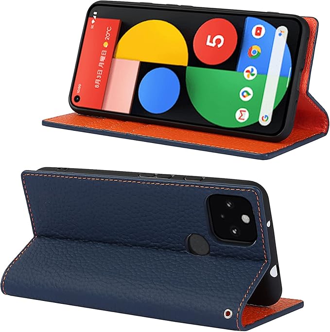 for Google Pixel 5A 5G ケース 本革 本革 for pixel5a 5g 手帳型ケース 財布型 カバー 手帳式 本革 柔らかい 本皮 スプラットホール付き スプラット同梱 内蔵マグネットカード収納 横置きスタンド機能 - ネイビー