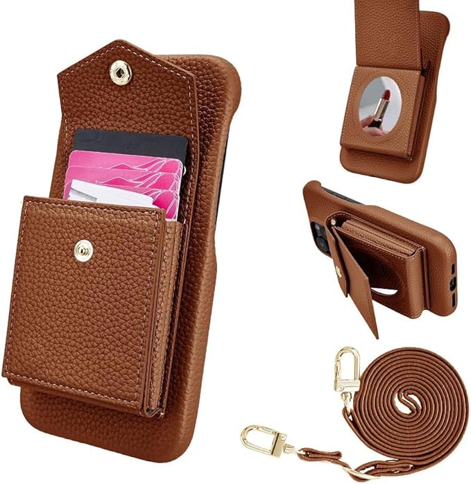 For Google Pixel 9A ケース 手帳型 背面 カード For グーグル ピクセル 9A ショルダー ミニメイクミラー付き 背面カード収納 縦+横置きスタンド機能 PUレザー 調整可能ショルダーベルト 耐衝撃 おしゃれ 財布型 ブラウン