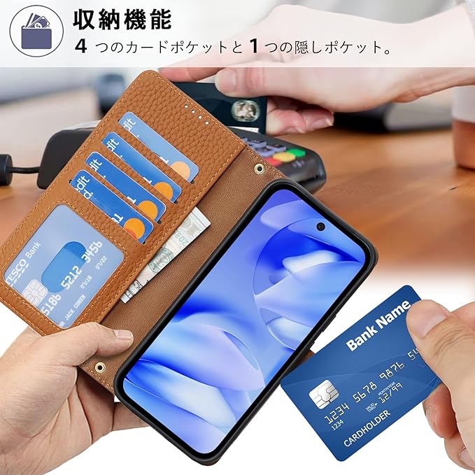 【対応機種】Google Pixel 9a(Pixel9a 通用 6.3インチ)対応機種と画面サイズをよくご確認のうえ、ご購入いただけますようお願い致します。 【収納機能】ケース内側には四つのカード入れとフリーポケットがつき、カード類や紙幣、名刺などが収納できます。普段の生活に便利をもたらします。 【スタンド機能】手帳型スタンド機能が付いて、自由に角度を調整して、お好みの角度で動画鑑賞や読書などを楽しめます。長時間での新幹線、飛行機の中での暇つぶしに最適です。 【高品質デザイン】外装はレザー製で、tpu素材に比べ、優れた耐衝撃性.カードスロットはRFIDブロック素材の保護設計で、クレジットカード情報が盗まれるのを防ぐことができます。スタイリッシュな外観、優れた耐傷性と防塵性能。変形しにくく、完全な保護を提供することができます。 【品質保証】私たちは誠意あるカスタマーサービスとすべての商品の交換サービスを提供します。万が一、商品が破損していた場合、まずはご連絡ください。