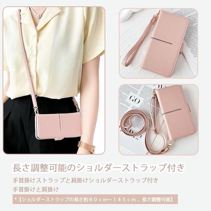 【人気の理由】❶大人かわいいカラーを取り揃えたツ-トンカラーケース。❷お揃いのショルダーストラップ付き、ストラップの長さ約80cm~145cm 、長さ調整可能のショルダーストラップで肩や首に掛けるとバッグ風になるのでおしゃれなです。犬の散歩の時、買い物の時にサッと携帯を使用できます、手荷物が多い時やアウトドアの時などにも使い勝手が抜群です、色々な場面で便利に使えます、特にポケットがない服が多い人にとってストラップ付きなのが一番いい選択です。❸サイドマグネット式なので、磁石はケースの側面にあり、カード面に直接接しないので、磁気カード類が壊れる心配がありません。両開きのマグネットベルトタイプで、カードを入れてもペラペラしなくて、ちゃんと締まることができ、鞄の中でカバーが開きません。