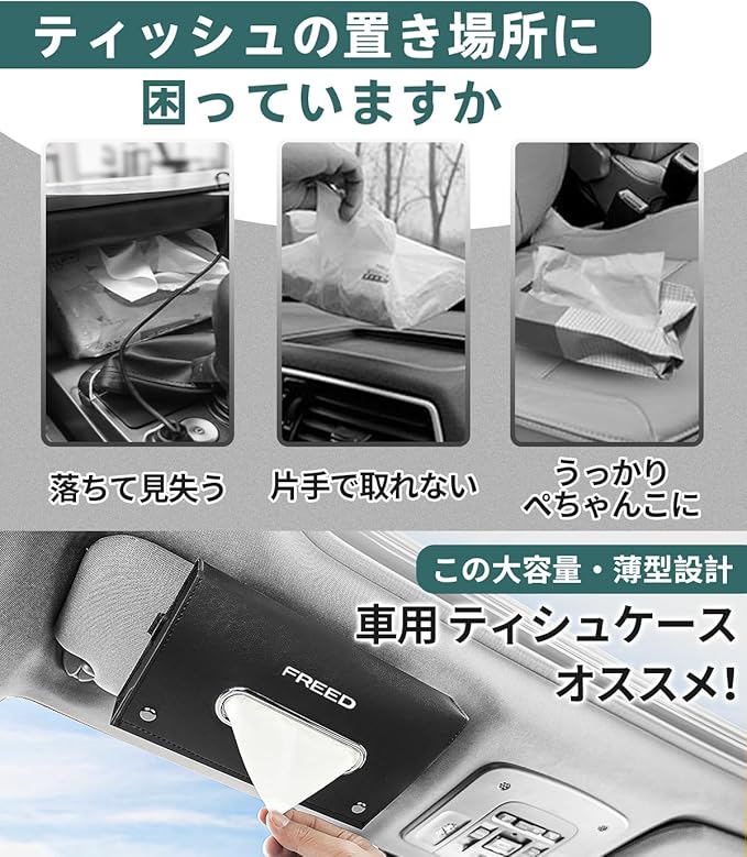 フリード 適用 車 ティッシュケース 大容量 ティッシュカバー FREED GB GT系 e:HEV エアー クロスター 対応 バイザー/ヘッドレスト兼用 車用 ティシュホルダー 薄型 おしゃれ カー用品 マグネット式 内装パーツ 24x14x5.5cm