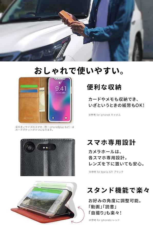 【よくある安っぽい手帳型ケースは嫌!】というあなたにピッタリです! チープなPUレザーケースと違い、本皮仕様ケースは珍しく目立つこと間違いなしです。 落としてスマホ破損が気になる方は、何といっても保護力高い全面を保護する手帳型ケースです。 大切なものが詰まったスマホの保護はこれで決まり!