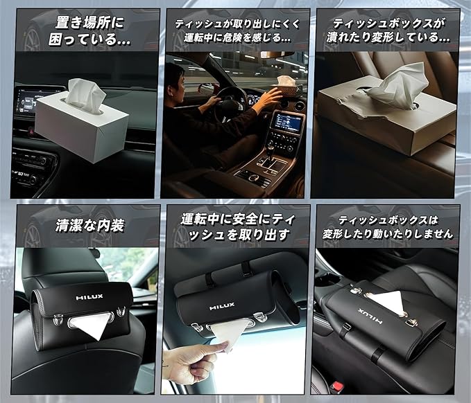 ハイラックス 専用 車 ティッシュケース ティッシュホルダー HILUX ハイラックス カスタムパーツ アクセサリー 内装パーツ ティッシュカバー おしゃれ ヘッドレストの裏では/手すり/サンバイザー取付 カー用品 便利グッズ 車内 1個入り ブラック
