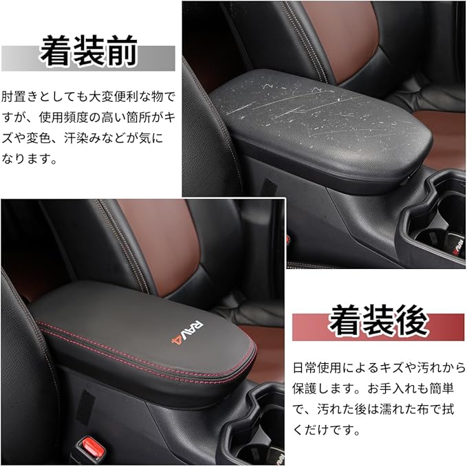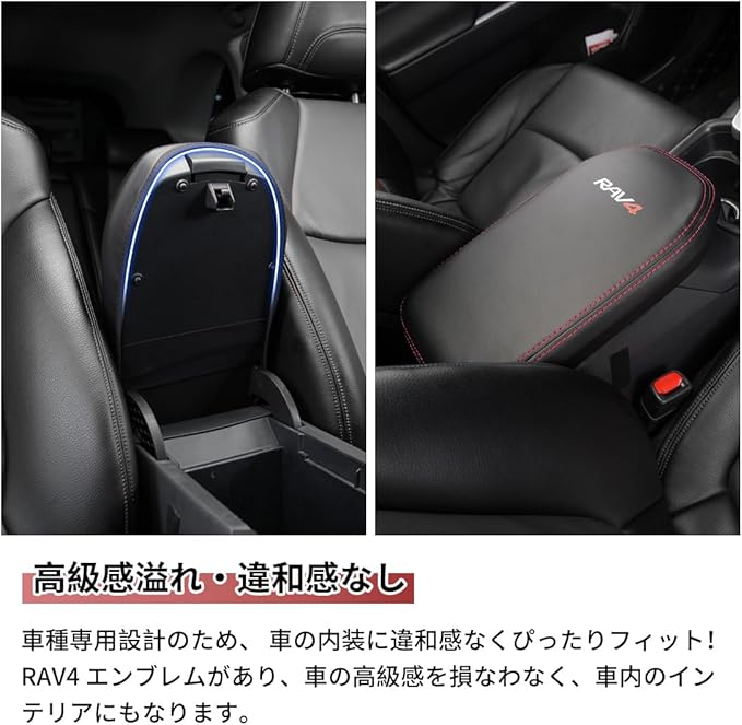 【高品質素材・5色選択可】このアームレストカバーがより良い感触のために高品質のPUレザーを採用し、アームレストを十分に包まれています。そして、弊社のアームレストカバーが異臭もなく、耐摩耗性、耐水性、汗を吸い取る機能があります。二重太い糸の縫製なので、カバーの耐久性が抜群です。車種専用設計のためフィット感良好、 RAV4 エンブレムがあり、車の高級感を損なわなく、車内のインテリアにもなります。5つのスタイルからお選びいただけますので、お好みに合わせて、ご愛車の内装の雰囲気とマッチします。