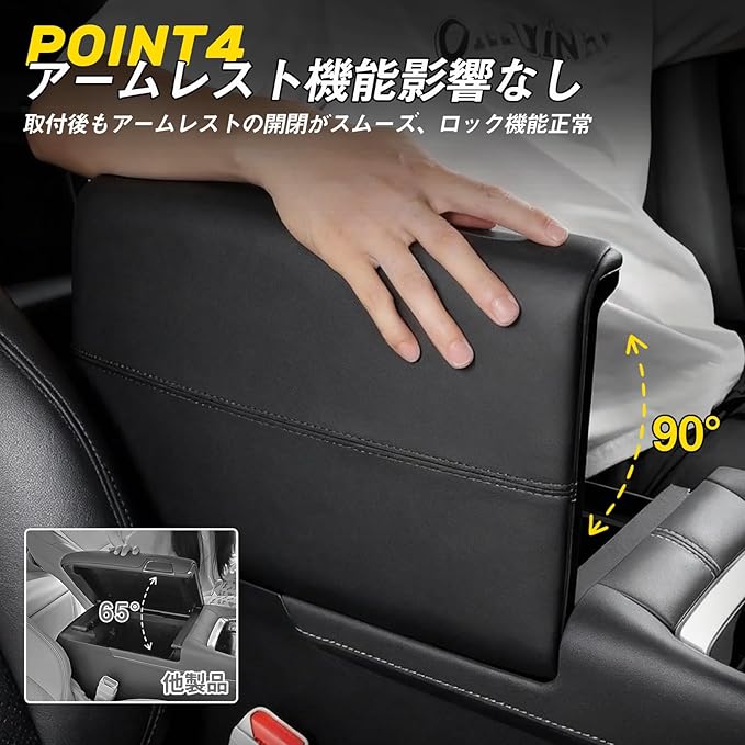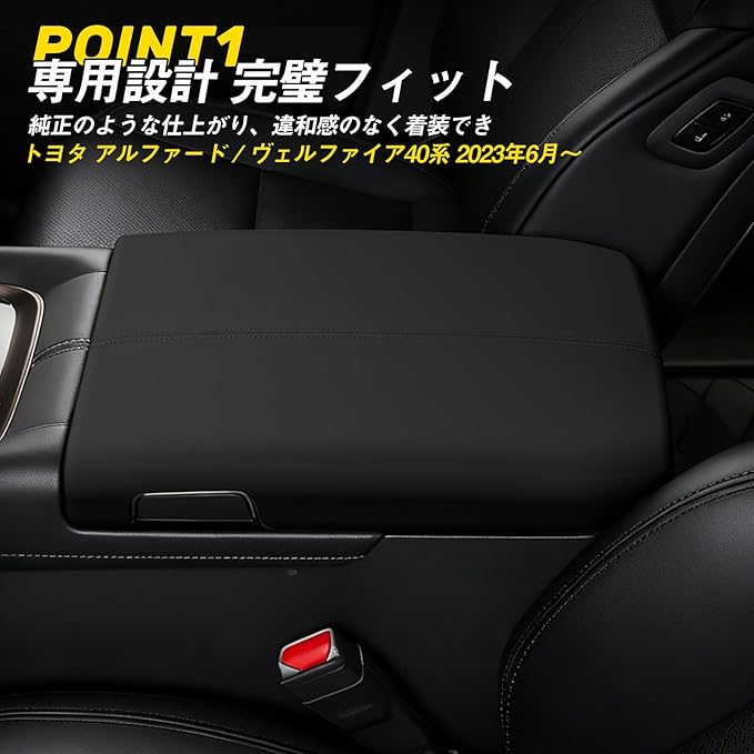 ☑【車種専用、ロック機能を妨げない設計】トヨタ アルファード ヴェルファイア40系のモデルを基に設計されるアームレストカバー。純正感を保ちながらアームレストを完全保護する専用タイプで、素材・カラーは純正に近い仕上がりで、車内インテリアに自然に溶け込む。隙間なくフィットし、装着しても違和感がなく、まるで未装着のような自然さを実現している。厚みや形状を最適化しているため、装着後もアームレストの開閉はスムーズで、純正同様に最大90 まで問題なく開けられる。ロック機能や収納スペースの使用を妨げる心配もなし。純正の美しさを保ちながらカスタムを楽しめるアイテムだ。