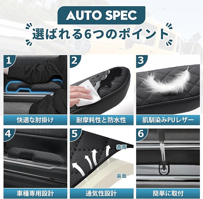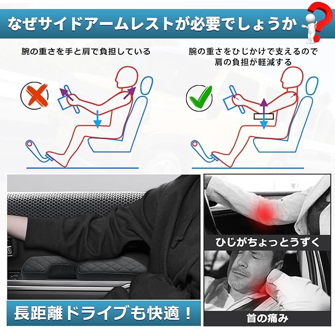 2.【長距離ドライブも快適に!左右セットのドアアームレスト】:運転中も手が届きやすい位置に追加ストレージを配置し、集中力を妨げる無駄な動作を軽減。左手でハンドル操作をしながら、右肘をしっかりサポートするので、疲れ知らずのドライブが実現します。さらに、左右セット設計で助手席も同様の快適性を確保。運転席と助手席、両方の疲労を軽減し、リラックスしたドライブを楽しめます。