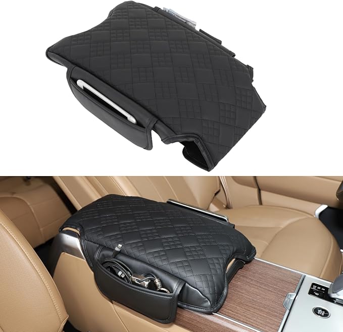 ランドローバー レンジローバー スポーツ/ヴォーグ 2023~2025年に専用 アームレストカバー アームレストクッション 保護カバー パッド センターコンソールカバー ポケット付き 汚れ防止 肘置き 肘掛け 着脱簡単 高品質レザー カー用品