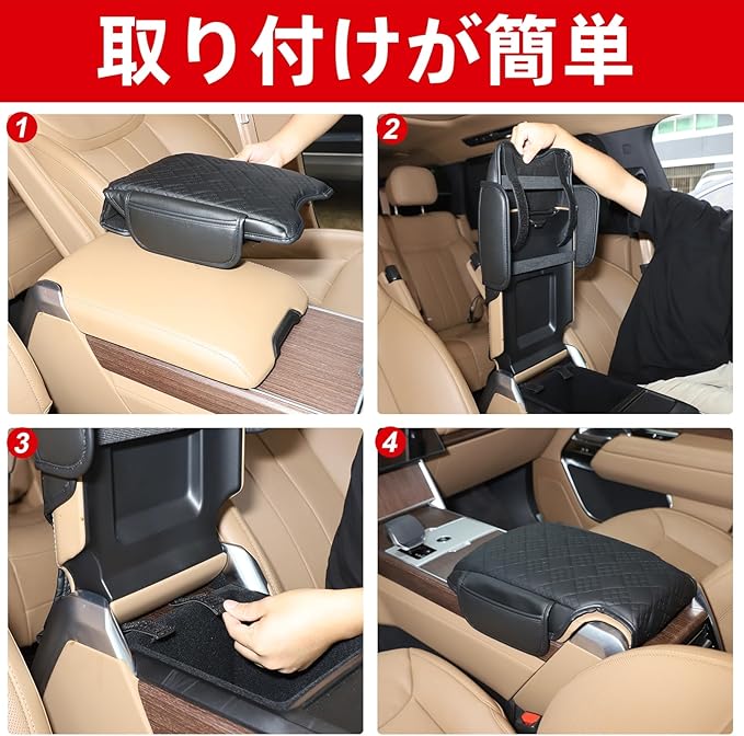 【高品質素材】防水性、耐久性のPUレザーと低反発のスポンジで作られ、ご愛車に高級感の感じを与えます。アームレストカバー表面の四角い型のパターンデザインは滑りを効果的に防ぎます。汚れた場合は、濡れたタオルで拭くだけでお手入れが簡単です。