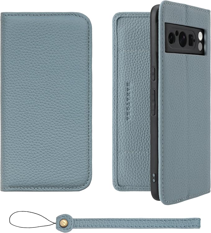 HANATORA Google Pixel 8Pro ケース 手帳型 本革 スマホケース スマホ スタンド ストラップ 付き シュリンクカーフレザー ギフト ベルトなし マグネットなし ブルーグレー H0XA-GP8Pro-BlueGray ギフト 誕生日ギフト 女性 彼女 お母さん お父さん 人気商品 30代 40代 50代 60代 70代