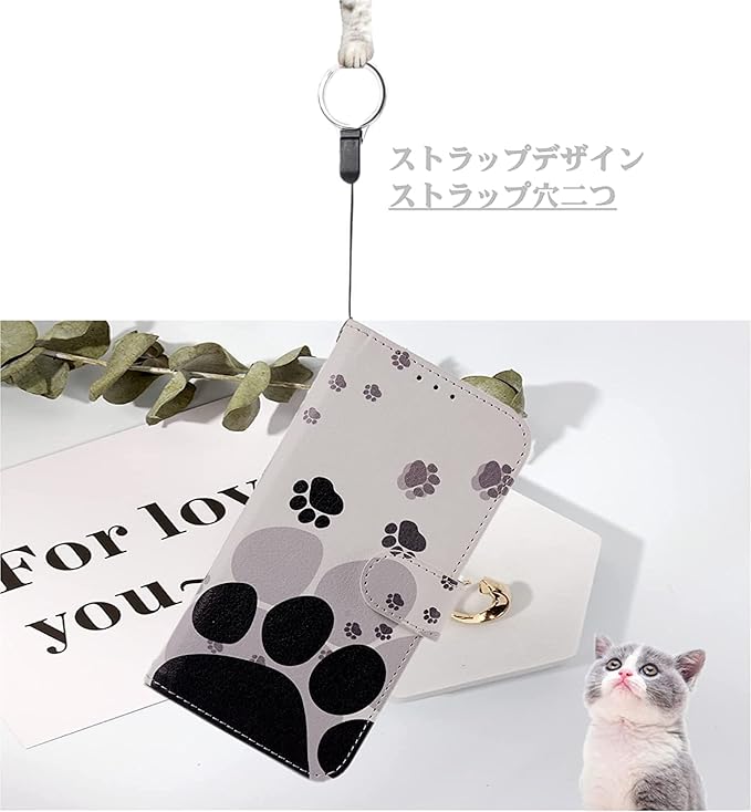 Google Pixel 9/9pro ケース 手帳型 ピクセル9 ケース 猫ストラップ付き おしゃれ かわいい 携帯カバー カード収納 財布型 TPUスタンド機能 かっこいい (ホワイト)