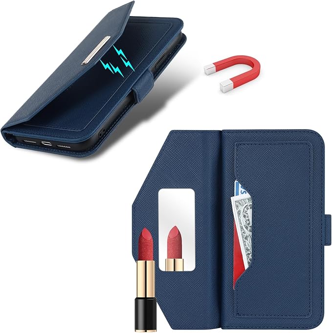【収納力抜群】:ケース内側にはカードを2-3枚収納できるカードポケットとメモ、2枚の紙幣など収納できるポケットがあります。Dカードや運転免許証、交通カード、クレジットカード、ICカード、定期券、名刺などが収納でき、家族の写真などが収納でき、中央に穴があり、急ぎ時に指一本で簡単に押し出すカードポケットです。カードを持ち運びしやすいカードスロット設計のビジネスウォレットは、あなたの人生をより便利にします。化粧鏡付き、女の子は化粧に大便利!