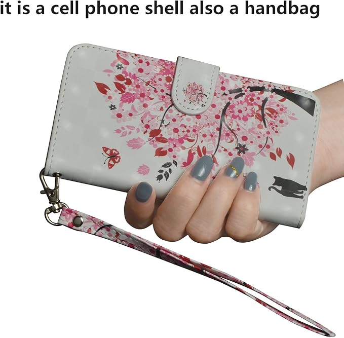 Google Pixel 7a 用 ケース 手帳型 おしゃれ 可愛い 3D プリント 絵柄 ストラップ 付き OYIME 派手な色柄 優雅 カバー 横開き マグネット カード収納 耐衝撃 滑り防止 キラキラ スマホケース グーグルピクセル 7a 手帳型ケース PUレザー 携帯カバー (猫と木)