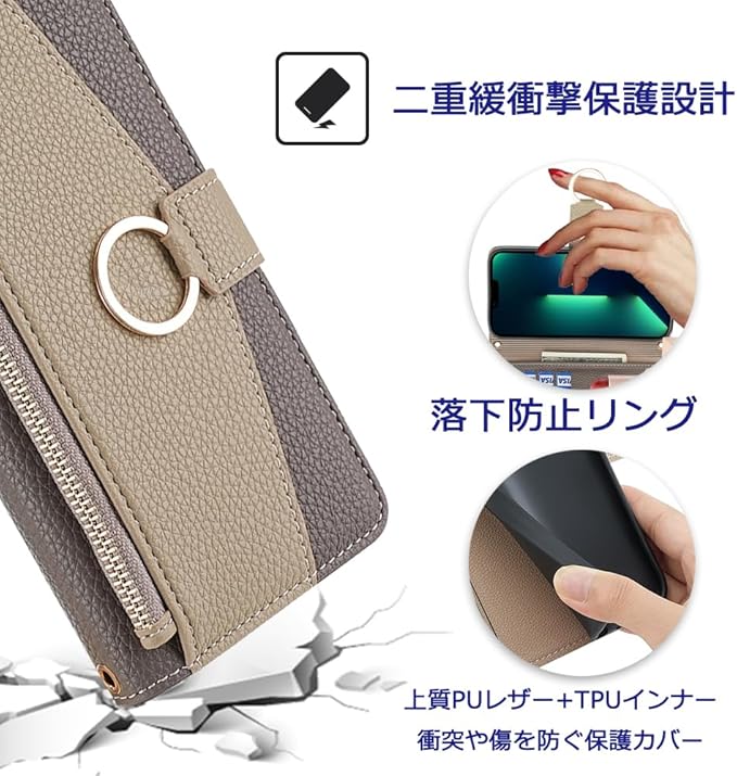 【高品質な素材】高品質PUレザー+柔軟なTPUカバーと組み合わせ、厳選された革を採用しており、目に見える高級感と抜群なPUレザー、中身は柔軟なTPU素材で作られて,TPU素材を使用したソフトカバーにより、耐熱性と柔軟性に優れたPUレザーを使用、指紋や油汚れに強い防滑素材です。装着ケースは柔らかくて、着脱しやすく、スマホにキズ付けることもない!シンプルで高級感が溢れる携帯ケースです。
