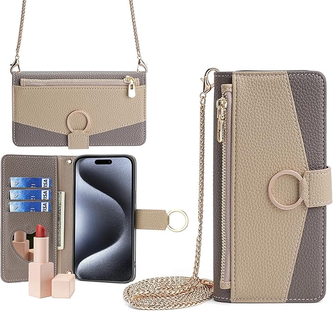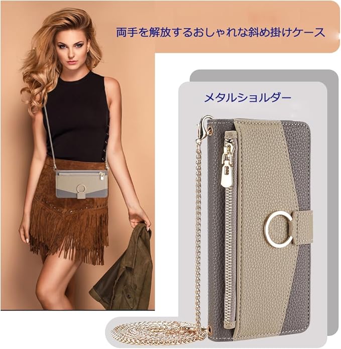 Google Pixel 7A ケース Pixel 7A ケース グーグル ピクセル Pixel 7A カバー スマホケース 化粧鏡付き カード収納 スタンド機能 ストラップ付き メタルショルダー Google Pixel 7A 手帳型ケース 耐衝撃 おしゃれ 高級PUレザー 2色組合せ 二色接合 携帯ケース (カーキ&ブラウン, Google Pixel 7A)