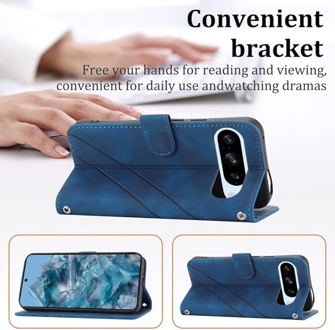 Google Pixel 9/9 Pro ケース 手帳型 通用 スマホケース 斜めがけ ショルダー 携帯ケース - 青