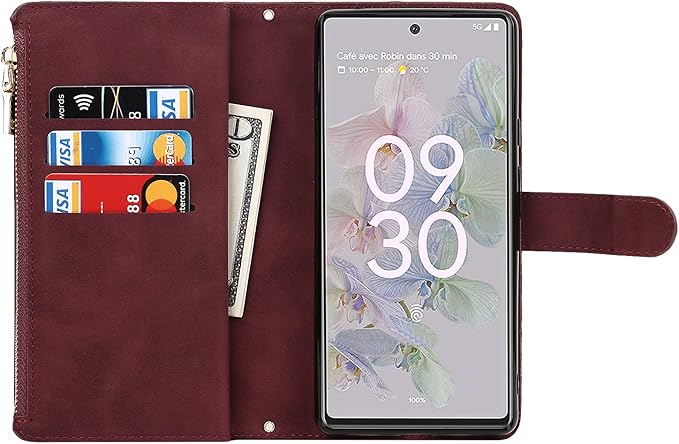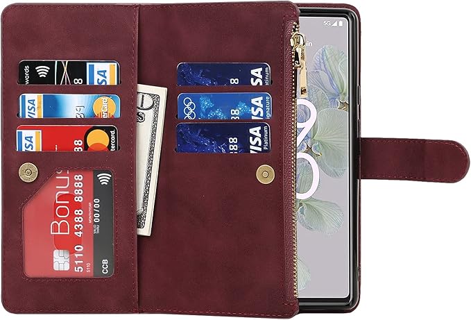 Eastwave for Google Pixel 6A ケース for pixel 6a 縄掛けケース 手帳型 財布型 ICカード コインポケット ストラップ付き カード 収納 小銭入れ ファスナーポケット付き PUレザー 6色レッド