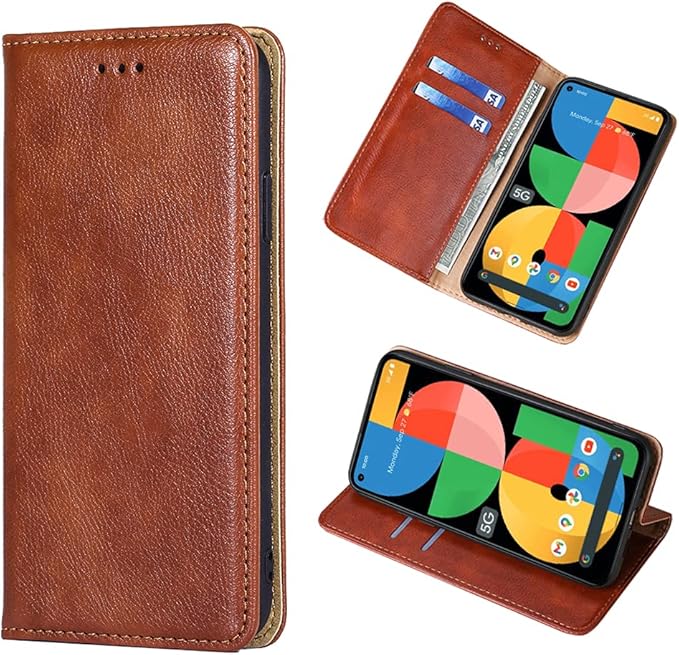 Google Pixel 5A 5G ケース 手帳型 Google Pixel 5A 5G 手帳 ケース マグネット式スタンド機能 カード収納 軽量 落下防止 衝撃吸収 全面保護 財布型 折り畳み式 横置き機能 携帯カバー Google Pixel 5A 5G スマホケース (レトロブラウン)