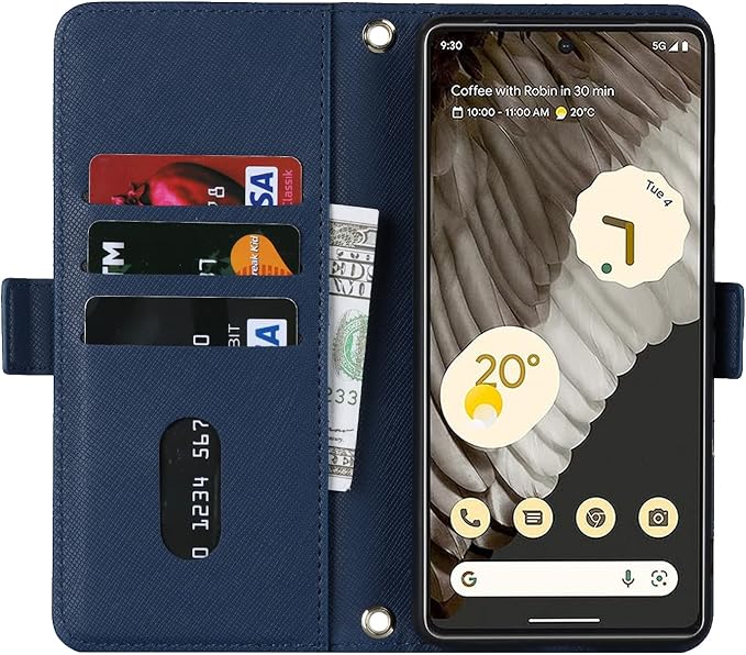 Pelanty for Pixel 7 Pro 手帳型ケース 縄掛け肩掛け斜めがけ ショルダー 合成皮革+TPU 携帯カバー 化粧鏡付き ストラップ付き マグネット for Google pixel7 Pro 財布型カバー ICカードポケット お札入れ小銭入れ大容量 収納ポケット スタンド機能 ファスナー付き グーグル ピクセル7pro 耐衝撃(肩縄付き-ブルー)