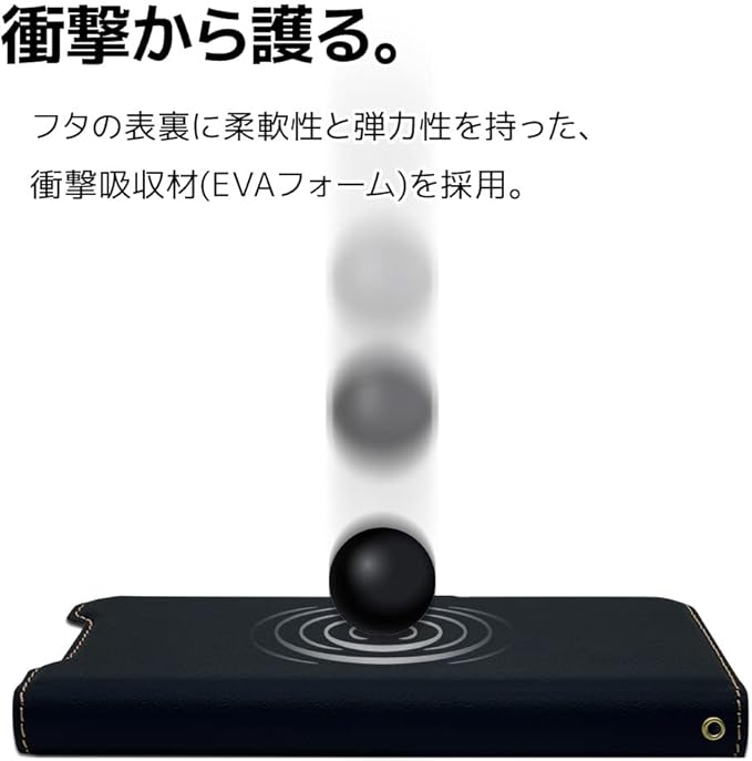 【衝撃吸収素材EVA】フタの表裏にEVAフォームを使用し、端末を衝撃から保護します。 ※すべての衝撃から端末を保護できることを保証するものではありません。