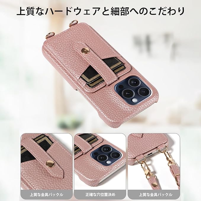 FOR pixel 9a ケース pixel9a ケース クレジットカード入れ ライチ紋様 背面収納 人気 おしゃれ カード収納 良い触り心地 耐衝撃 保護カバー 変色なし 豪華 ファッション 落ち着いた色 肩掛け 斜めかけ 縄掛けーローズゴールド