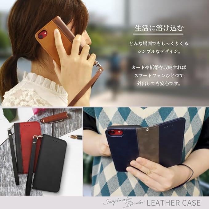 【上質な手帳型スマホケース】 本革調なのに高級感を演出してくれるフェイクレザー手帳型ケース!シンプルなデザインなので、ビジネスやフォーマルにもピッタリです。※製造時期によりケース角の仕様が商品画像と異なるものが届く場合がございますのでご了承くださいませ。