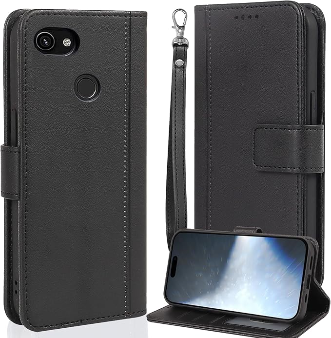 【WenziLior】 Google Pixel 3a 用 ケース 手帳型 ストラップ Google Pixel3a softbank docomo SIMフリー カバー 適用 グーグル ピクセル 3a 手帳ケース ピクセル3a 携帯カバー Pixel3a スマホケース case ストラップ付き マグネット カード入れ カード収納 耐衝撃 スタンド機能 スマホケース ブラック