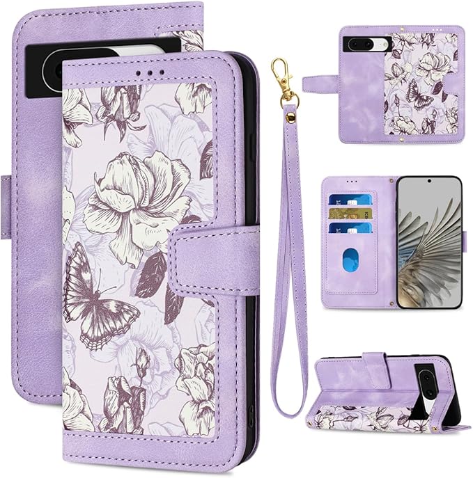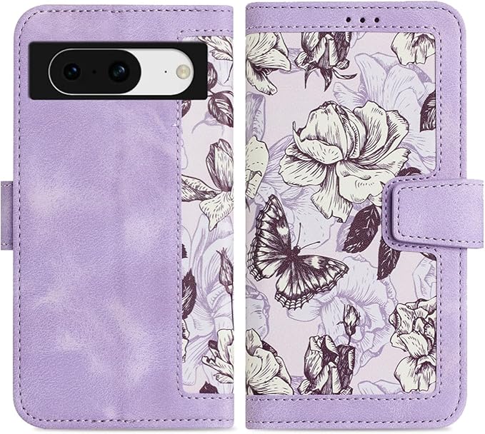 NKECXKJ Google Pixel 8a 用ケース 手帳型 スマホケース ピクセル 8 a PUレザー 財布型 軽量 薄型 可愛い 花柄 カードポケット付き カード収納 ストラップ付 マグネット式 横置きスタンド機能 グーグルピクセル8a ぐーくるぴくせる8a ぐー来るぴくせる8a グーグルgoole8a スマホケース 耐衝撃 全面保護 カバー(パープル)