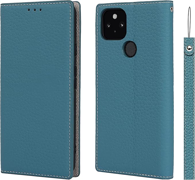Pelanty for Google Pixel 5A ケース手帳型 pixel5a スマホケース 牛革製品 本革レザー 財布型カバー カード収納 スタンド機能 内蔵マグネット 手作り柔らかい グーグル ピクセル5a 5g 携帯カバー ストラップ付 ヘッドフォンケーブル 耐衝撃 スカイブルー