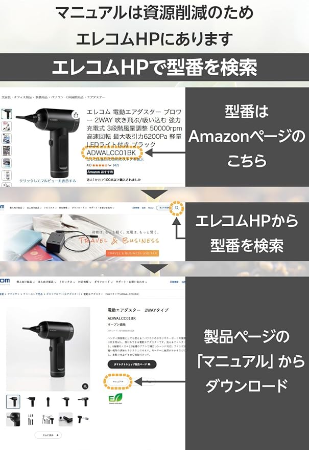 ■廃棄物削減に取り組み、製品に同梱する取扱説明書等をペーパーレス化した製品です。