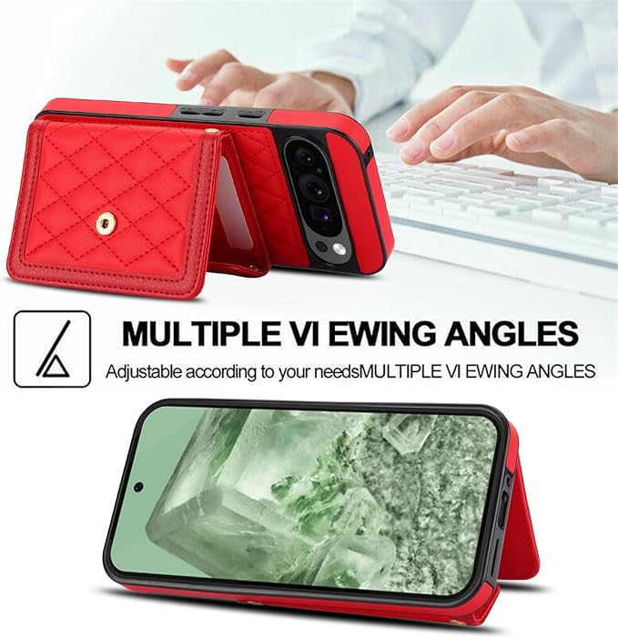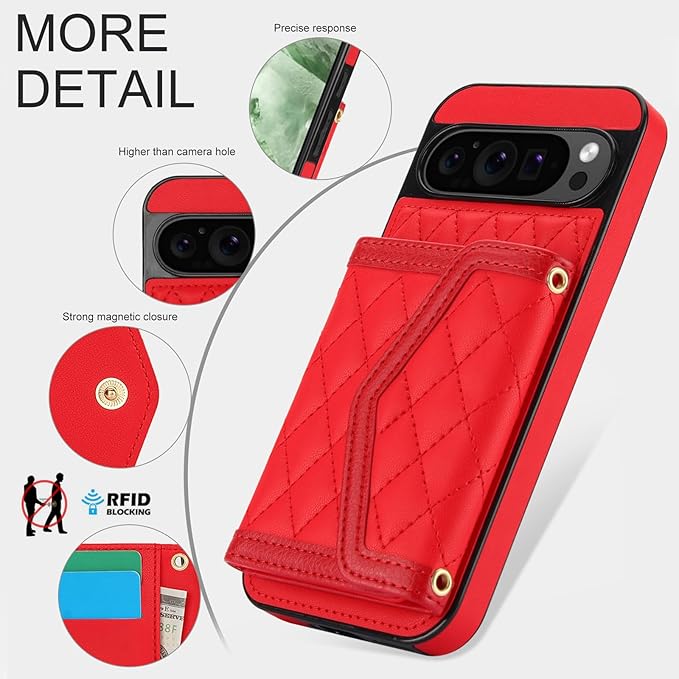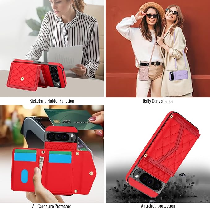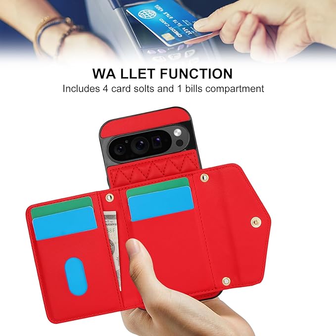 グーグルピクセル9 手帳型ケース 背面カード収納 pixel9 pro ケース 手帳型ショルダー google ピクセル 9 ケース カード グーグルピクセル9 ケース カード入れ google pixel9 手帳型ケース 人気 google pixel 9 ケース ショルダー おしゃれ フレーム保護 女性 化粧鏡 財布型 耐衝撃 斜めがけ 調節可能な[レッド]