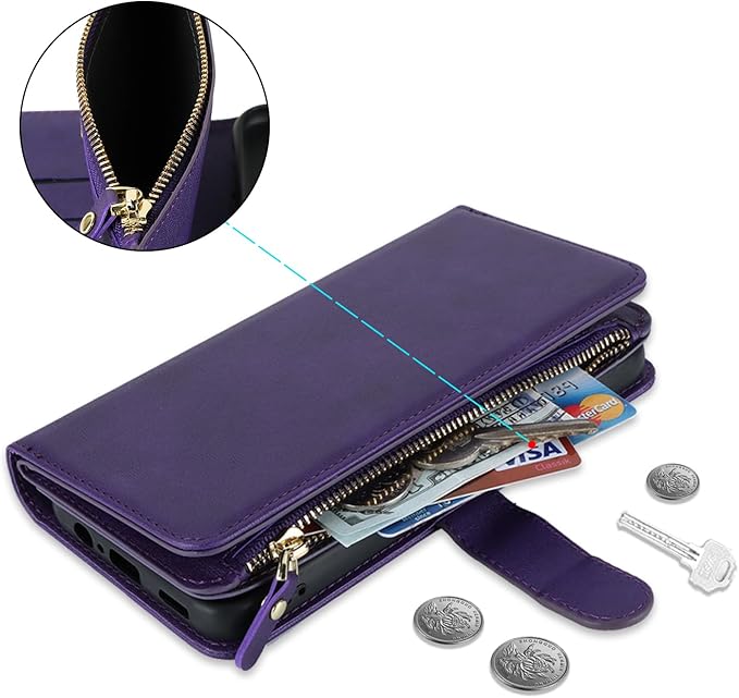 Eastwave for Google Pixel 8 Pro ケース for pixel 8pro 縄掛けケース for Google Pixel8 Pro 手帳型 財布型 ICカード コインポケット ストラップ付き カード 収納 小銭入れ ファスナーポケット付き PUレザー 6色 パープル