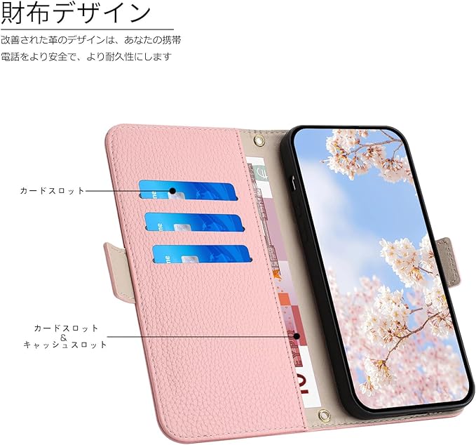 カード収納機能:このフリップ式デザインには三つのカードスロットと一つの現金カードポケットがあり、ショッピングカード、名刺、銀行カード、硬貨などを収納できます。便利な収納機能により、買い物、旅行、仕事などあらゆるシーンに適しています。磁気クロージャーのデザインにより、あなたのカードや現金が簡単に紛失することはなく、同時に携帯電話の画面も保護できます。