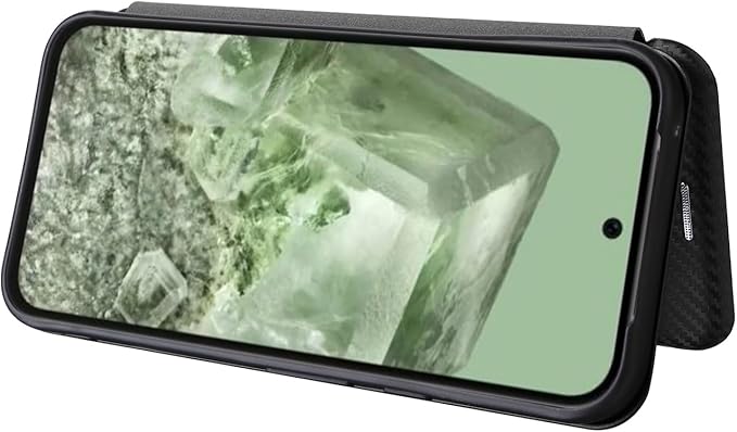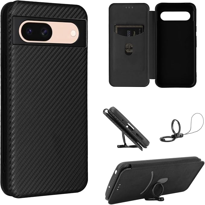Google Pixel 8A ケース 手帳型 薄型 炭素繊維カバー TPU 保護バンパー SIMフリー softbank au 全対応 ピクセル 8a 専用カバー 財布型 マグネット式 カード収納 落下防止 ホルダ 横開き グーグル ピクセル8a フリップケース 液晶保護フィルム付き (ブラック, Pixel 8a)