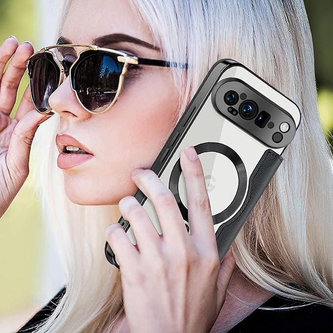 Google Pixel 9 Pro XL 用 ケース 手帳型 かわいい グーグルピクセル9 Pro XL 用 携帯カバー背面 透明 Magsafe対応 おしゃれ 薄型 カード収納 PUレザー 内蔵マグネット 耐衝撃 財布型 カード収納 全面保護 落下保護 耐摩擦スマホケース(クリア,ブラック)