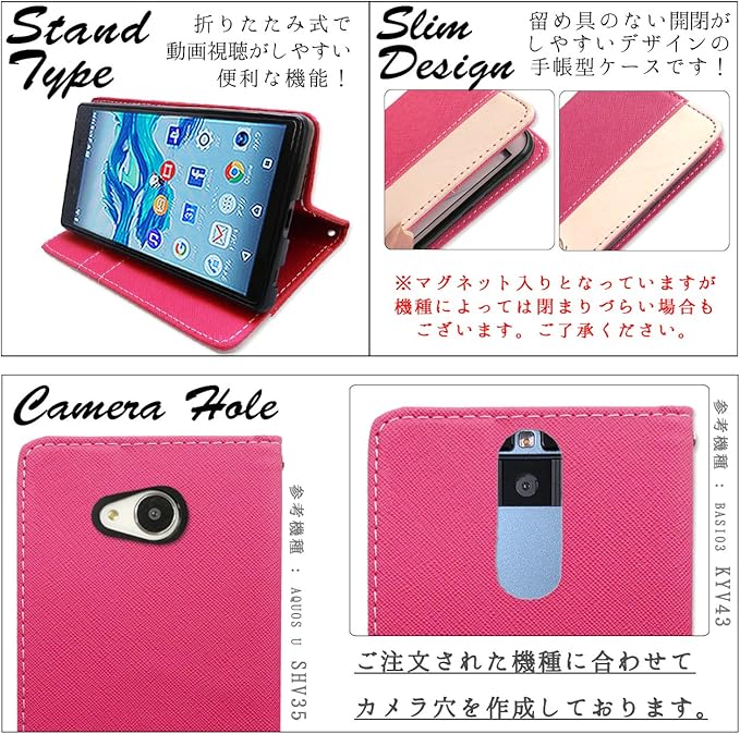 材質:PUレザー *厚めの生地を使用しています。手帳型ケースはスマホ本体より大きめの作りになっております。