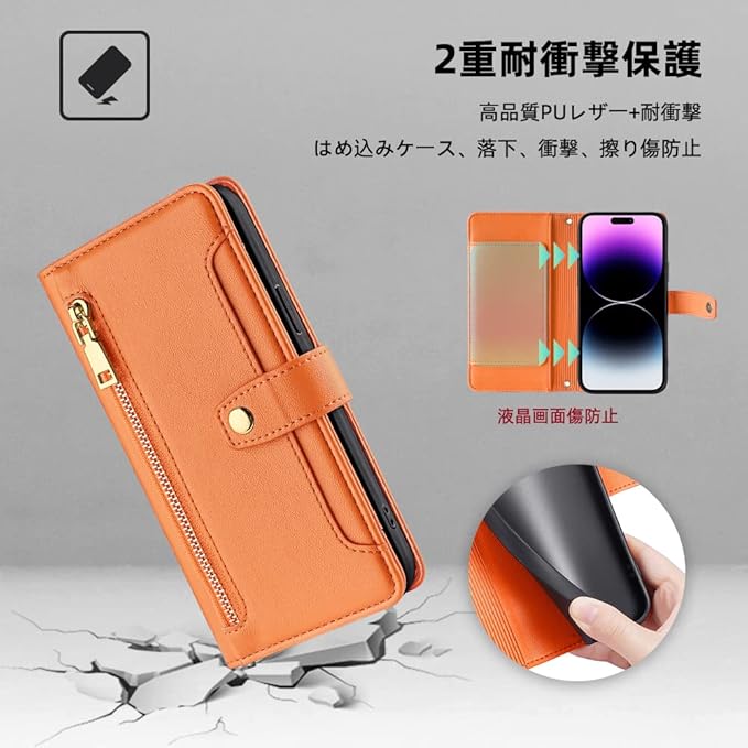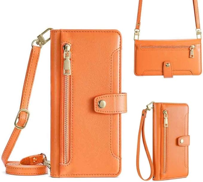 Google Pixel 7A ケース Google Pixel 7A カバー【COKOVI】Google Pixel 7A ケース手帳型 財布型 ストラップと首掛け付き 耐衝撃 カード 御洒落 女性 可愛い おしゃれ カードホルダー付き 高級PUレザー サイドマグネット スタンド機能 ショルダーストラップ 肩掛け ストラップ チャックポケット付き (Pixel 7A, オレンジ)