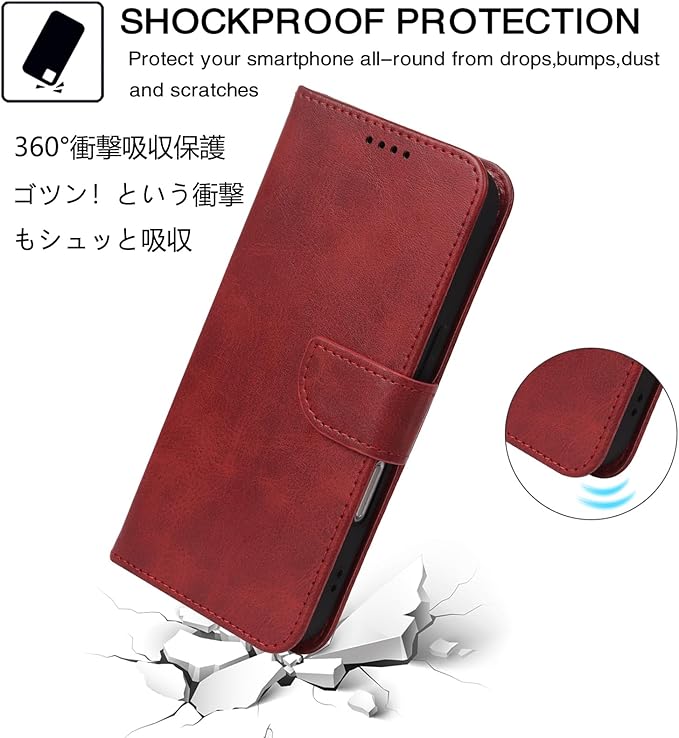 【高品質素材】:表面はなめらかな手触りで、外側は高級合成皮革、内側は柔らかいTPU素材を採用。二重構造で耐衝撃性を高め、万一スマホを落としたときでも、大切なスマートフォン本体をしっかり保護します。