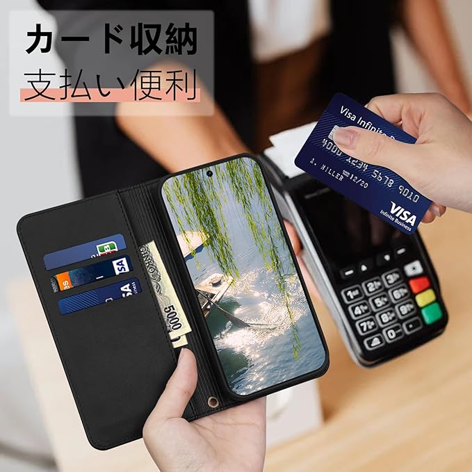 カード収納付き:ピクセル 8a 手帳型ケースは電子マネーやクレジットカードなどを入れておくには充分です。入れすぎるとふたが閉じづらくなりますので、ご注意くださいませ。