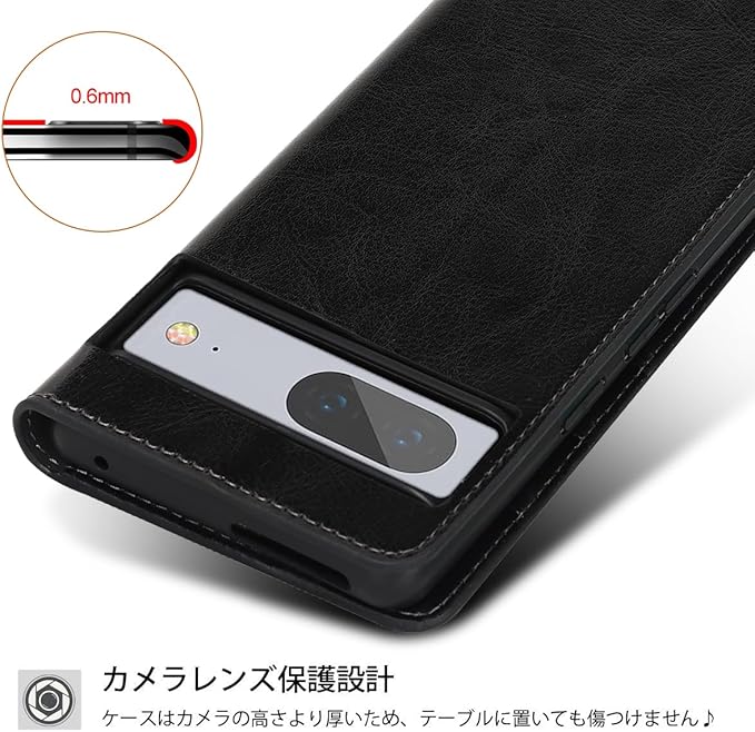 Google 適用 pixel 7A ケース 手帳型 【 マグネット無し 】 耐衝撃 カードケース pixel7A ケース 手帳型 au SIMフリー softbank ソフトバンク docomo ドコモ 全対応 手帳ケース ピクセル 7A カバー グーグル ピクセル7A カバー pixel7A スマホケース 手帳型 カバー pixel7Aケース 財布型 適用 case 【iCoverCase】 マグネットなし スタンド機能 光沢加工 牛革 レザー 財布型 カード入れ ブラック