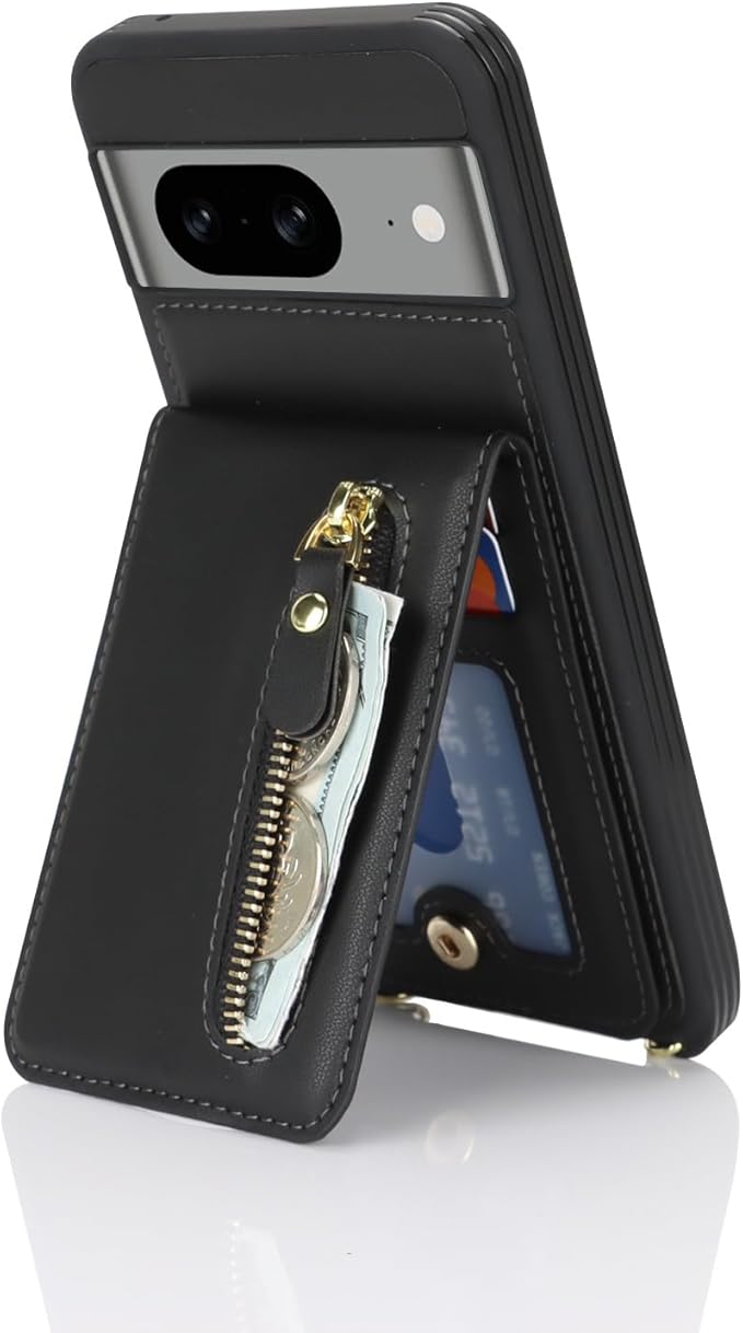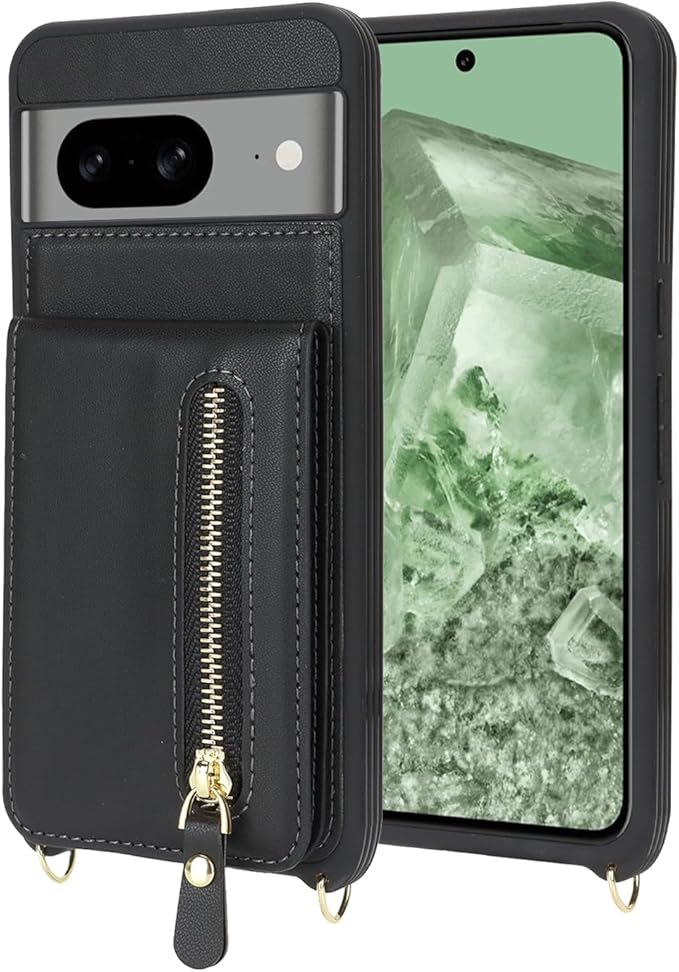 Google Pixel 8 ケース ショルダー ストラップ付き ショルダーケース 背面フリップ 上下開 手帳型 Google用 pixel8 au SIMフリー softbank 全対応 グーグル ピクセル8 カバー pixel8 スマホケース case 適用 iCoverCase カード収納 縦置き 横置き スタンド 肩がけ 首掛け 斜め掛け 携帯カバー ブラック