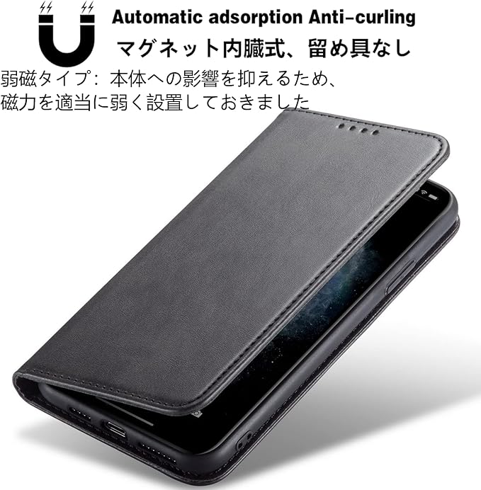 【特徴1】:マグネット内蔵のフリップケースです、留め具無しで余計な飾りも一切なし、外見はとてもシンプルの感じで逆に外観強化することができます。指への邪魔も無しで持ち心地と使い勝手が良いのです。