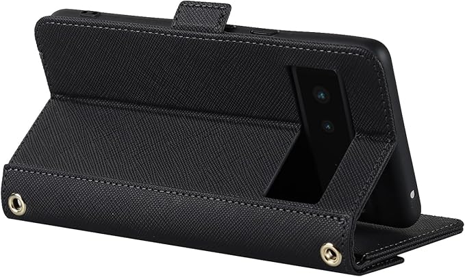 Pelanty for Pixel 6A 手帳型ケース 縄掛け肩掛け斜めがけ ショルダー 合成皮革+TPU 携帯カバー 化粧鏡付き ストラップ付き マグネット for Google pixel6 A 財布型カバー ICカードポケット お札入れ小銭入れ大容量 収納ポケット スタンド機能 ファスナー付き グーグル ピクセル6a 耐衝撃(肩縄付き-ブラック)