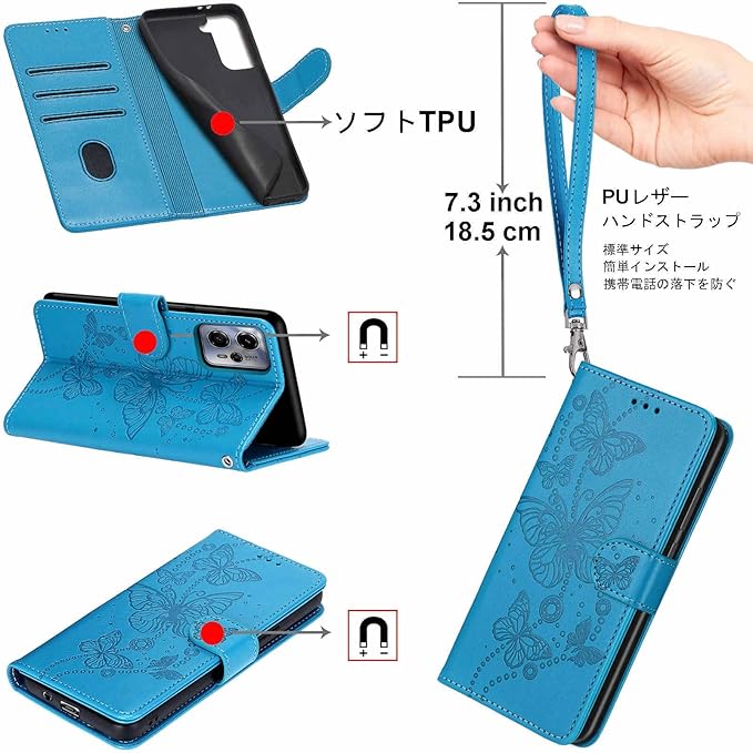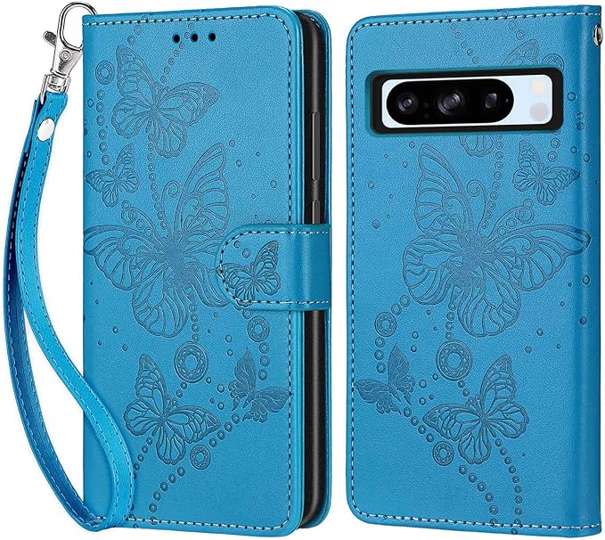 Google Pixel 8 Pro ケース 手帳型 対応 Pixel 8 Pro 財布型 携帯カバー Pixel 8 Proスマホケース 高级PUレザー 耐衝撃 耐摩擦 全面保護 ホルダーバンプパタカード収納 軽量 手触りが良い 人気上品な シンプル気質 ギフト 青い蝶