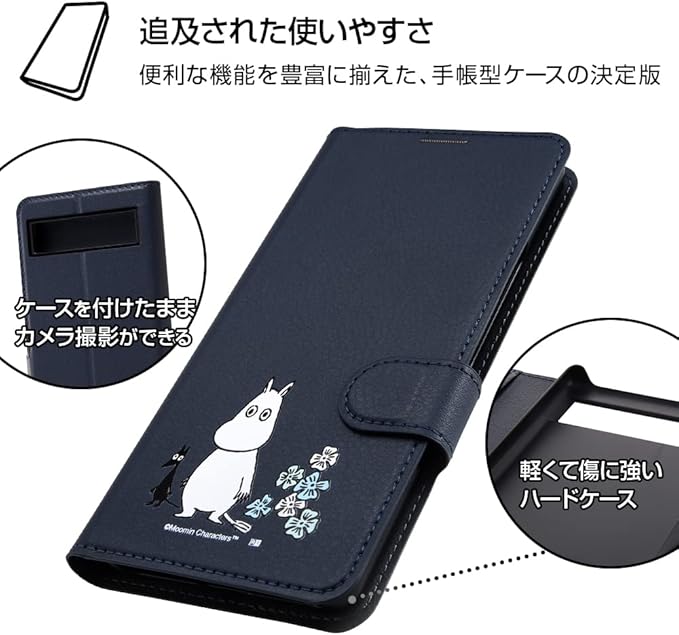 内側にはカードポケットの付いた薄くてスリムなレザーに、『ムーミン』のデザインがプリントされた手帳型Google Pixel 6a 用ケース。マグネット式フリップが付いているのでケースの開閉が簡単に行えます。 キャラクター名: ムーミン ( ムーミントロール ) moomin むーみん フラワー はな 花 navy ネイビー ねいびー あお 青 北欧 ほくおう Tove Jansson トーベヤンソン Lars Jansson ラルス・ヤンソン