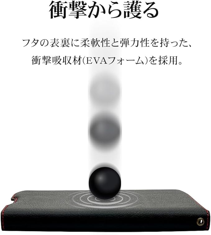 【衝撃吸収素材EVA】フタの表裏にEVAフォームを使用し、端末を衝撃から保護します。 ※すべての衝撃から端末を保護できることを保証するものではありません。