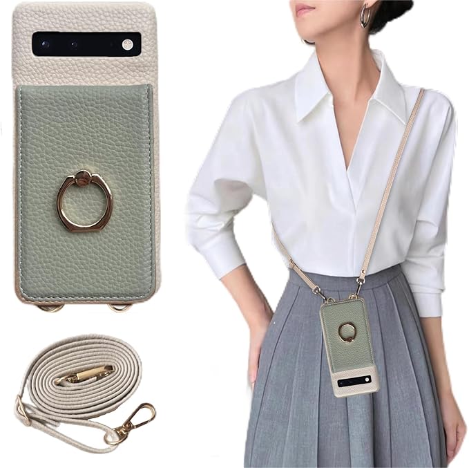 グーグルピクセル8a 用 ケース ショルダー for google pixel 8a 用 薄型 かわいい スマホケース ピクセル8a ストラップ 可愛い 携帯 背面手帳型 斜めかけ 肩掛け 首掛け 紐付き 韓国 軽量 カード収納 ショルダーケース おしゃれ 2way (グリーン ホワイト)