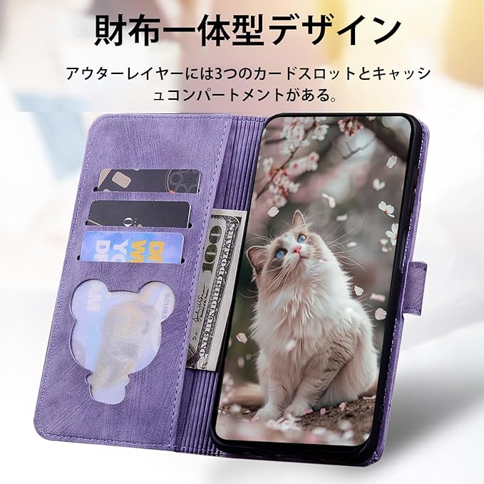 Google Pixel 9 Pro XL ケース 手帳型 ピクセル9pro xl ケース グーグルピクセル 9 pro xl スマホ ケース 手帳型 pixel9proxlケース 人気 PUレザー カード収納 かわいい猫 軽量 便利 手触りが良い 耐衝撃 角度調整可能なスタンド マグネット式 pixel 9 pro xl カバー 手帳型[パープル]